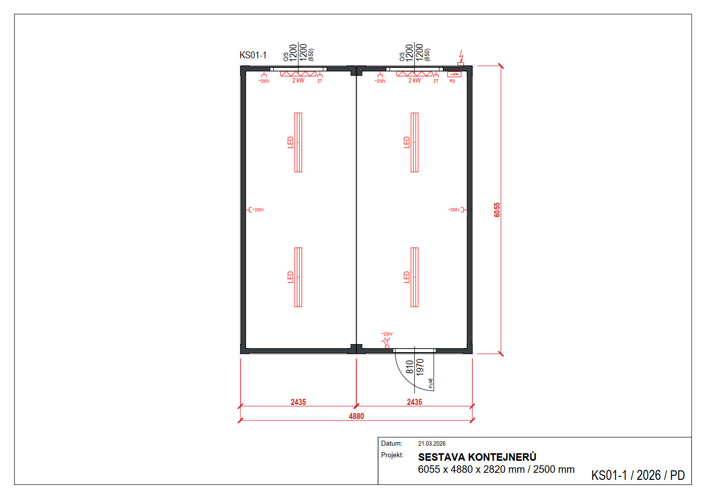 Vnější rozměry /dxšxv/: 6055 x 4880 x 2820 mm / 2500 mm