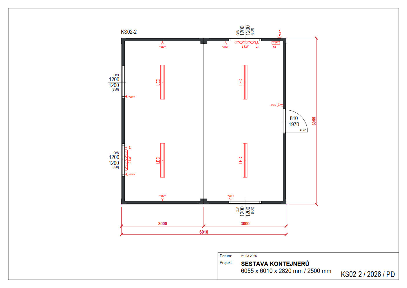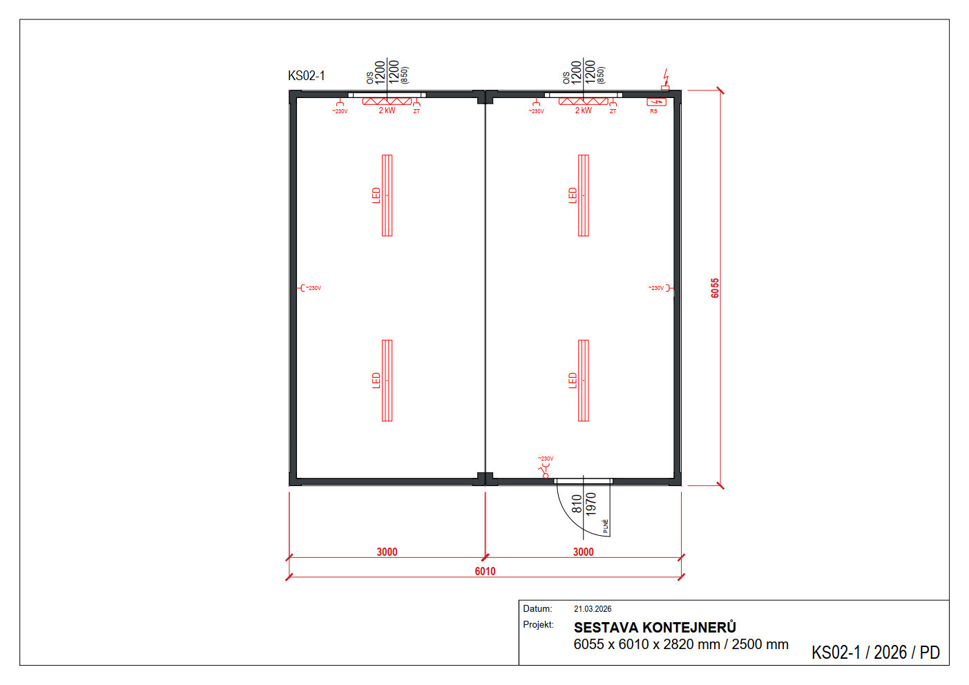 Vnější rozměry /dxšxv/: 6055 x 6010 x 2820 mm / 2500 mm