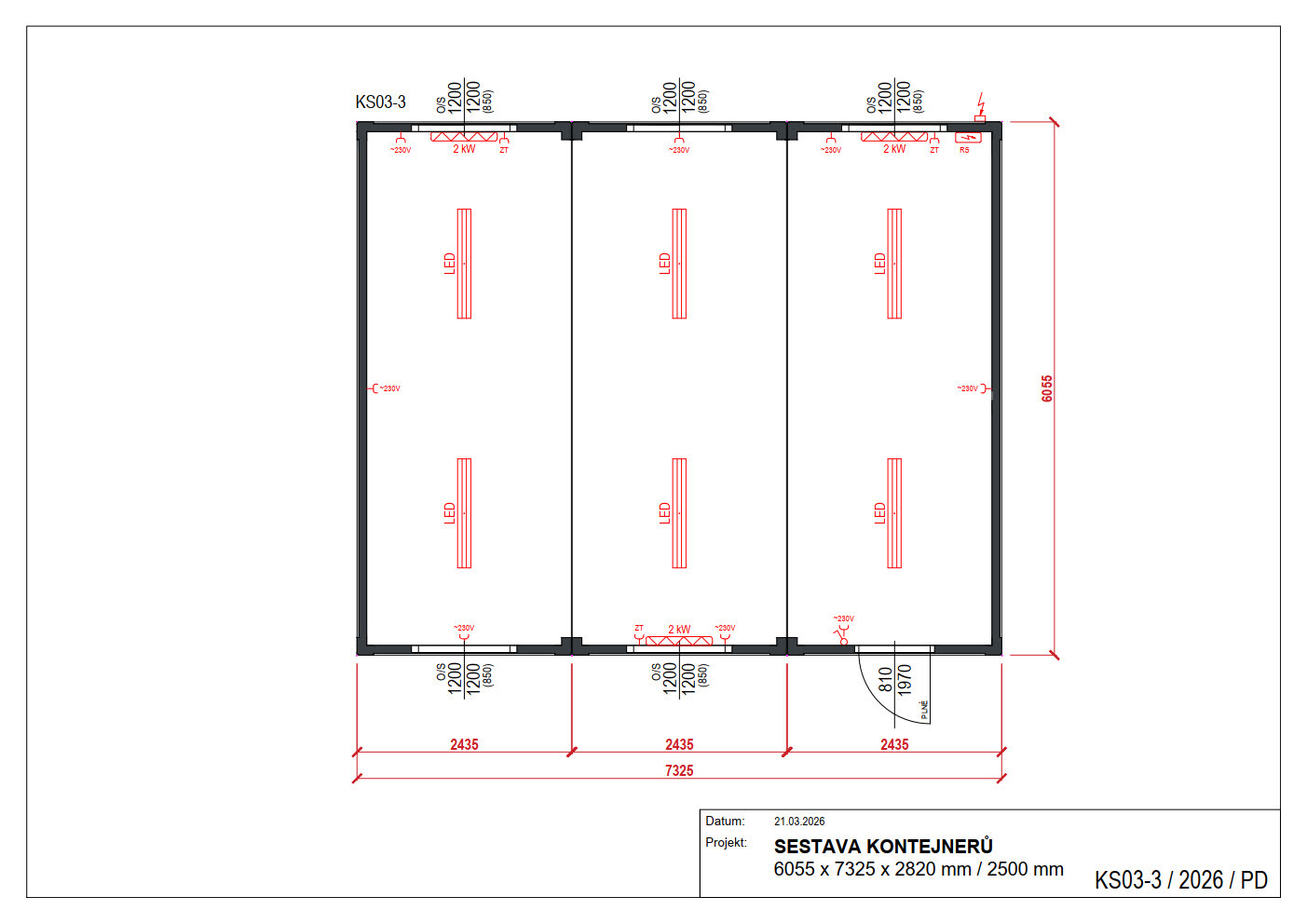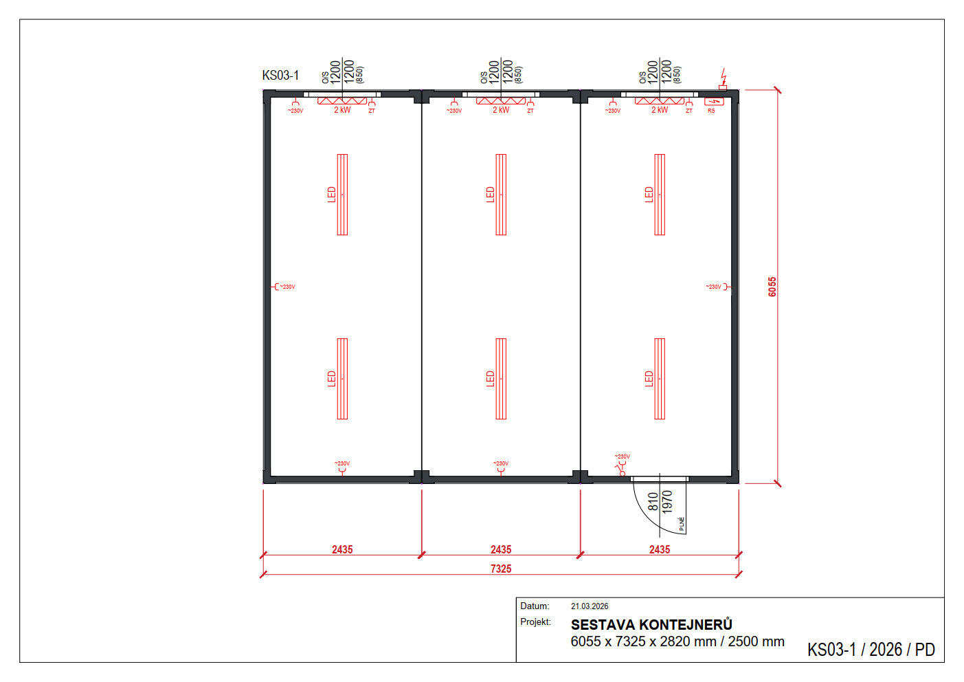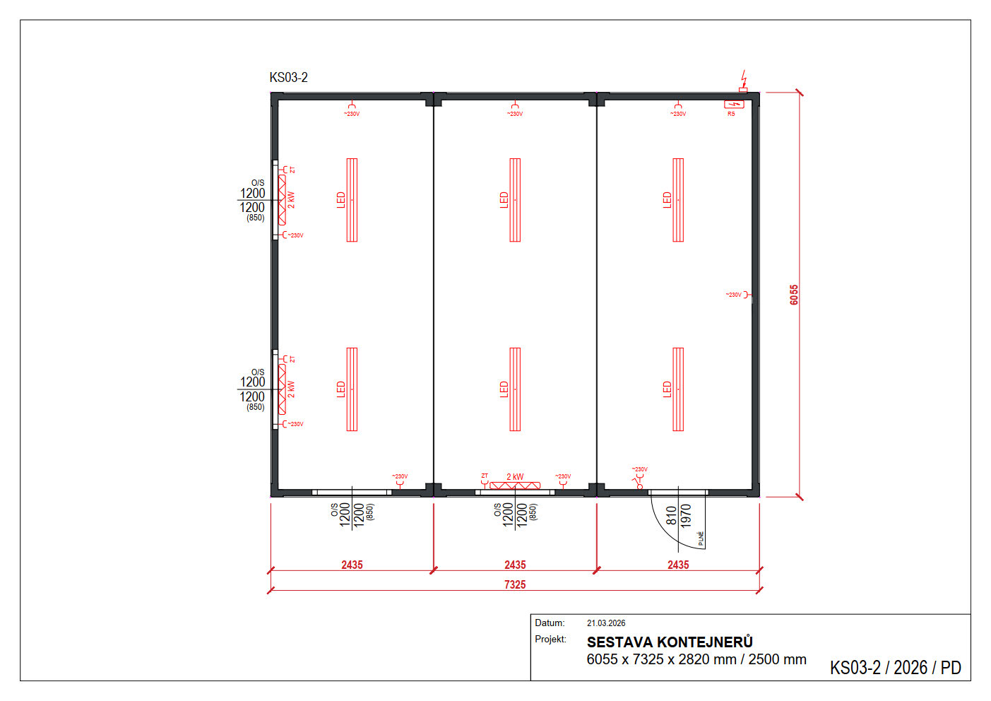 Vnější rozměry /dxšxv/: 6055 x 7325 x 2820 mm / 2500 mm