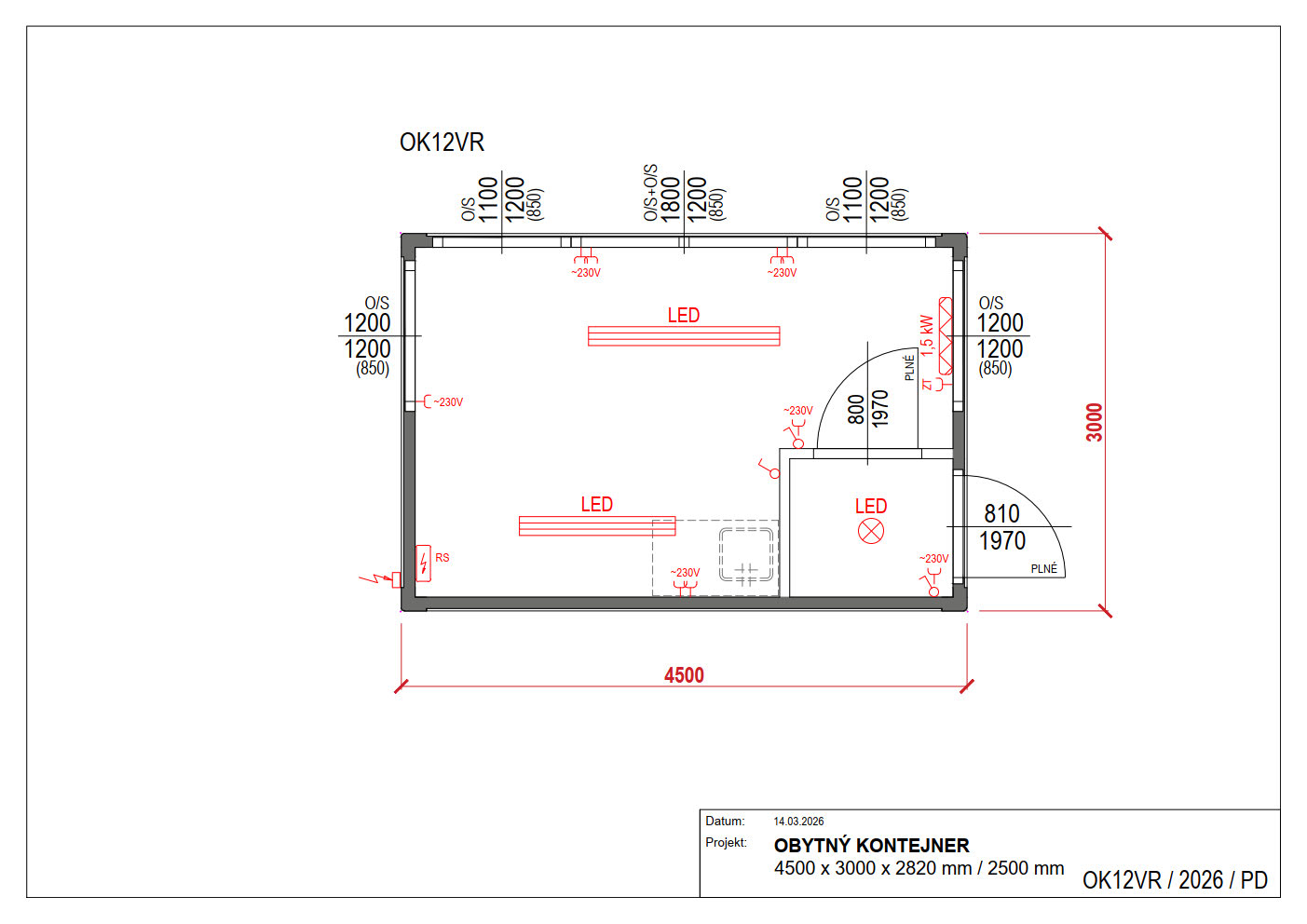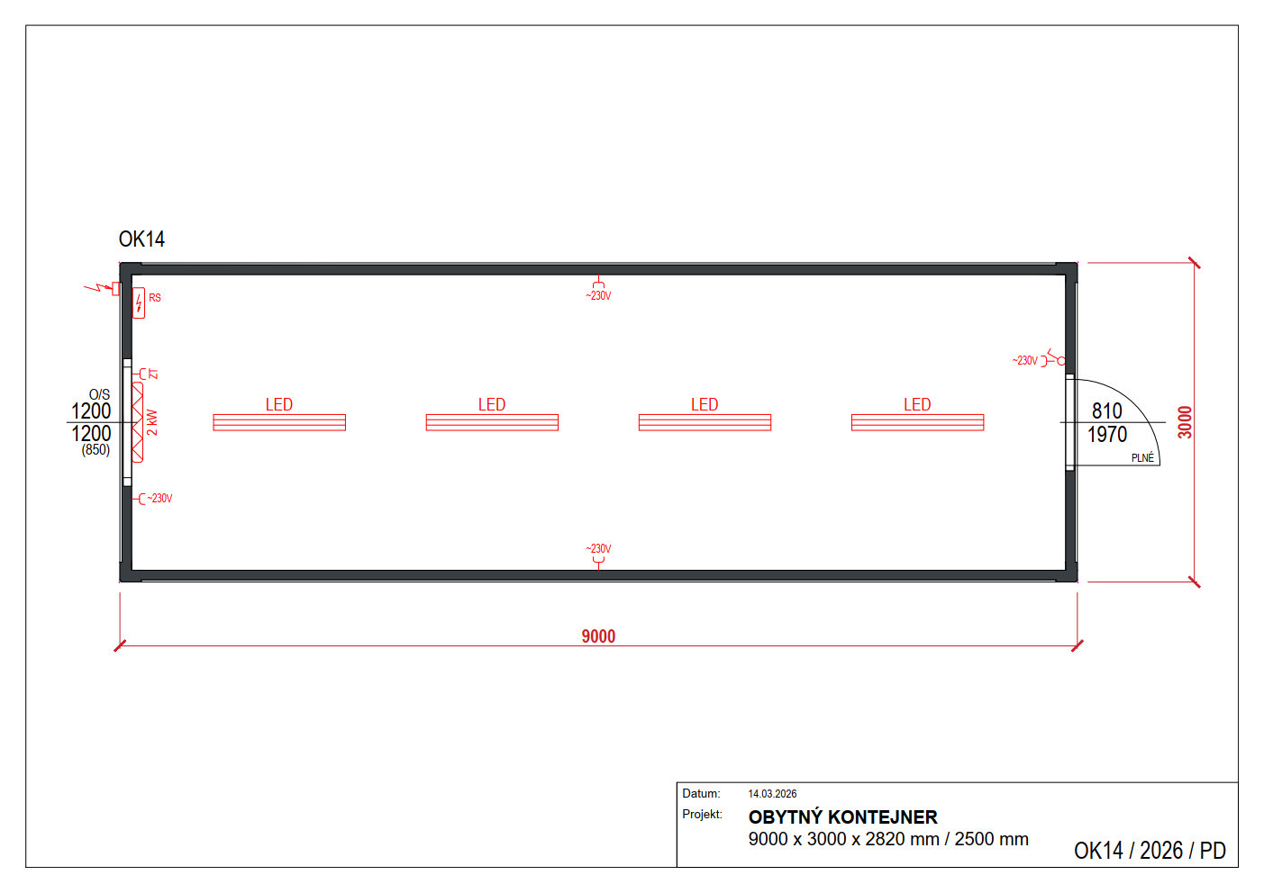 Rozměry /dxšxv/: 9000 x 3000 x 2820 mm / 2500 mm
