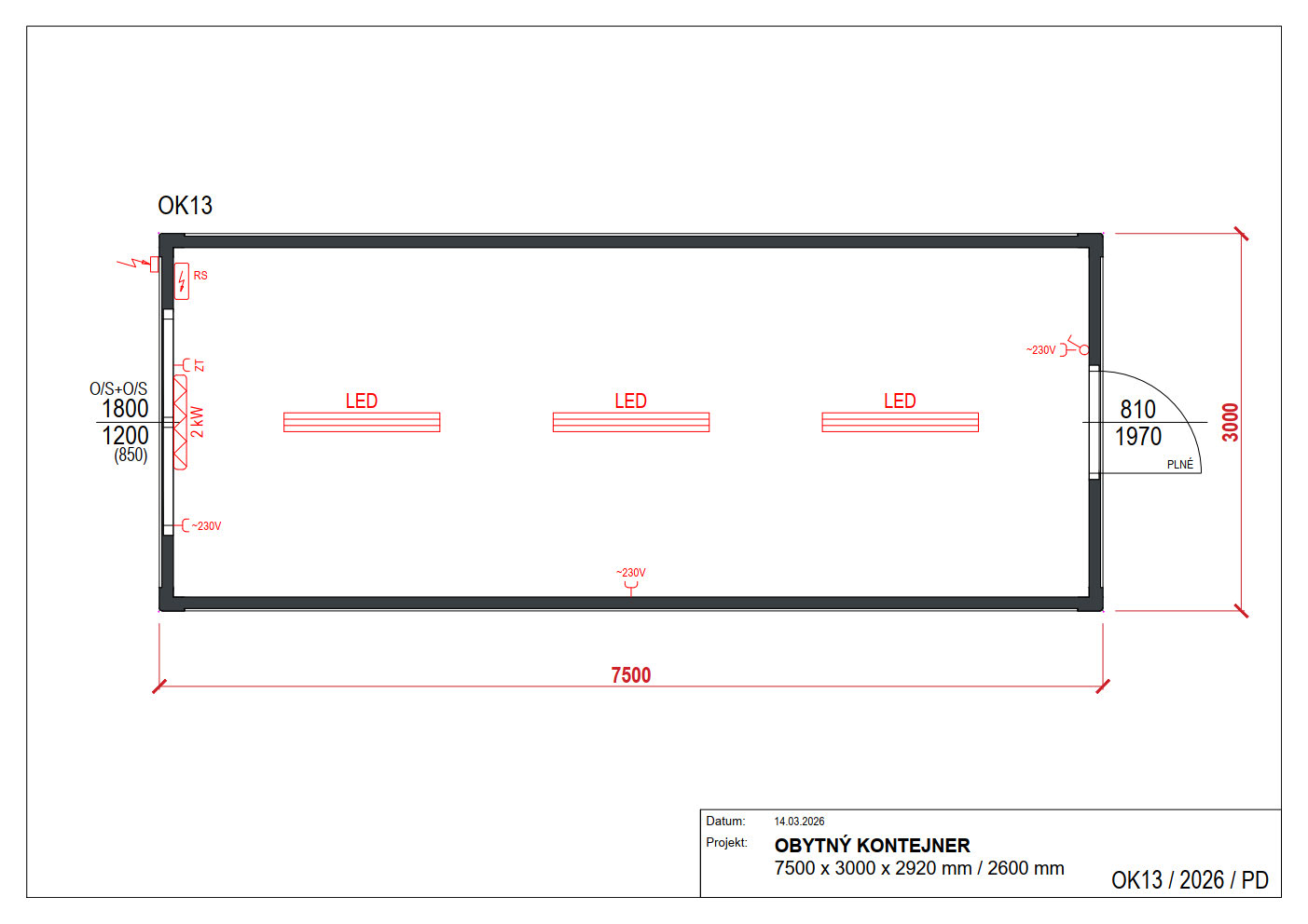 Rozměry /dxšxv/: 7500 x 3000 x 2920 mm / 2600 mm
