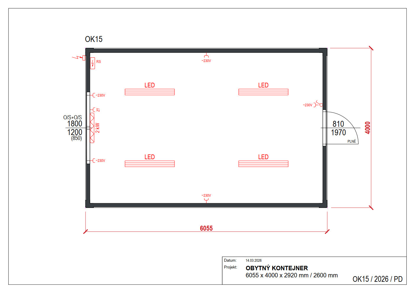Rozměry /dxšxv/: 6055 x 4000 x 2920 mm / 2600 mm